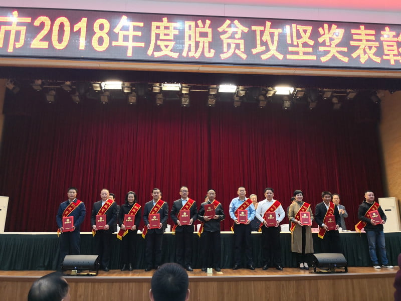 孔德穩(中)榮獲信陽市2018年度脫貧攻堅“奉獻獎”