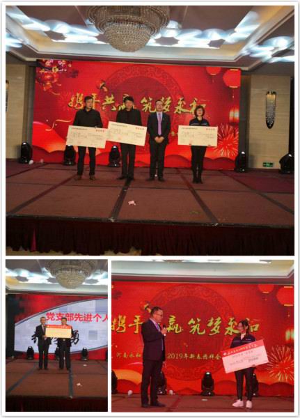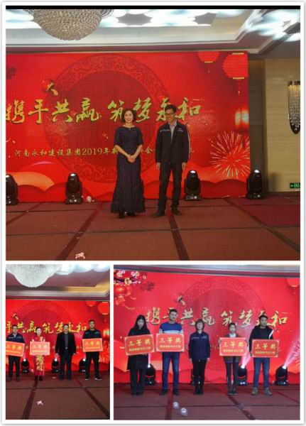 金戈鐵馬聞征鼓,只爭朝夕啟新程。2019年1月26日下午,“攜手共贏筑夢永和”——河南永和建設集團2019年新春團拜會暨頒獎典禮在錦江國際酒店隆重召開,信陽市政協副主席、市工商聯主席陳豫,信陽市平橋區政協副主席陳明德、信陽市委統 戰部辦公室主任楊輝、信陽市平橋區工商聯主席張虹、商城縣、羅山縣、五里辦事處等多位領導、信陽日報社、信陽電視臺等多家媒體領導及新聞記者、河南永和建設集團有限公司全體員工及家屬、合作商,社會友人出席了本次團拜會。大家歡聚一堂,辭舊迎新、表彰、文藝展演,共同度過了振奮人心又愉快難忘的時光。