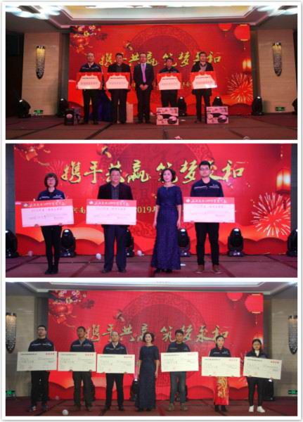 團拜會中間還穿插了抽獎環節,隨著各等獎項的抽取,不斷掀起團拜會的高 潮。同時,團拜會還揭曉了2018年為永和集團作出突出貢獻的各大獎項。基層、中層、高層、團隊獎、特別奉獻獎、精神文明獎、合作伙伴獎、效益獎、年度黨員獎、黨支部先進個人獎等多項獎項,對永和人過去一年為公司的付出表示肯定,為永和人的來年鼓足了干勁。