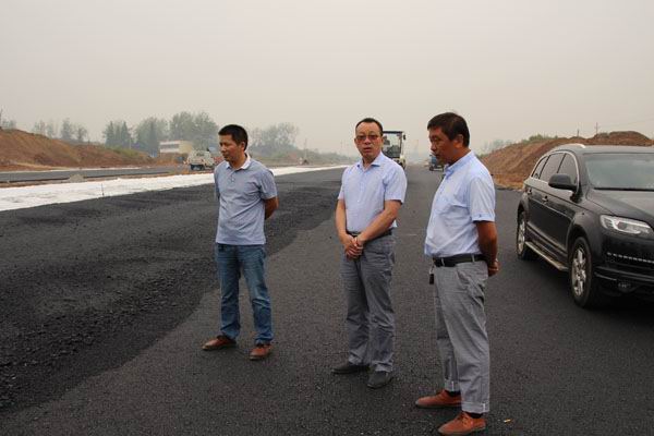 9月22日上午,公司總經理孔德穩在工程部、辦公室等人員的陪同下,驅車分別來到信陽職業技術學院、羊山新區工業大道,檢查指導路面施工情況。在職業技術學院,孔總與項目部人員詳細了解三個標段的施工進展情況,目前存在的困難和問題。當項目部陳志明經理介紹到二、三標路段水泥穩定碎石已做完,現正抓緊進行涵管鋪設,后面進入三標人行道建設時,孔總對項目部的工作給予肯定。隨后,孔總一行又來到羊山新區家居產業小鎮工業大道,檢查瀝青路面施工情況。油面分公司漆昌輝經理、王有志經理分別向孔總介紹了近期工業大道油面鋪設進度,并表示在天氣陰雨不斷的情況下,油面分公司組織廣大員工起早貪黑,加班加點,不怕疲勞,連續作戰,搶天氣、抓進度,力爭在中秋節前完工。孔總對油面分公司這種敢打敢拼的精神給予高度贊揚。圖為孔總分別在職院、工業大道項目工地檢查時的情景。