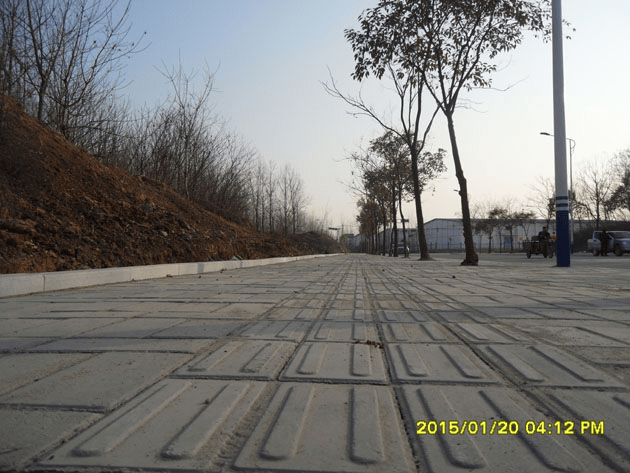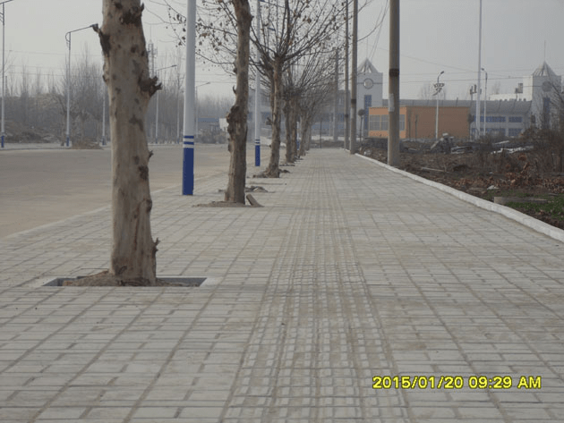 我公司組織施工的“羅山縣產業集聚區部分主干道人行道道路硬化一標段”經過90天的緊張施工,現已全面完工。該標段包括羅山縣產業集聚區站前西道(局部)和工業大道(局部)人行道建設工程。其中站前西道人行道建設工程施工長度為602.4M;工業大道人行道建設工程施工長度為630.5M,兩路段工程寬度皆為5M,結構層從下至 上依次為:8CM碎石基層、10CM砼墊層、3CM水泥砂漿結合層、6CM人行道磚。該工程正在準備驗收。